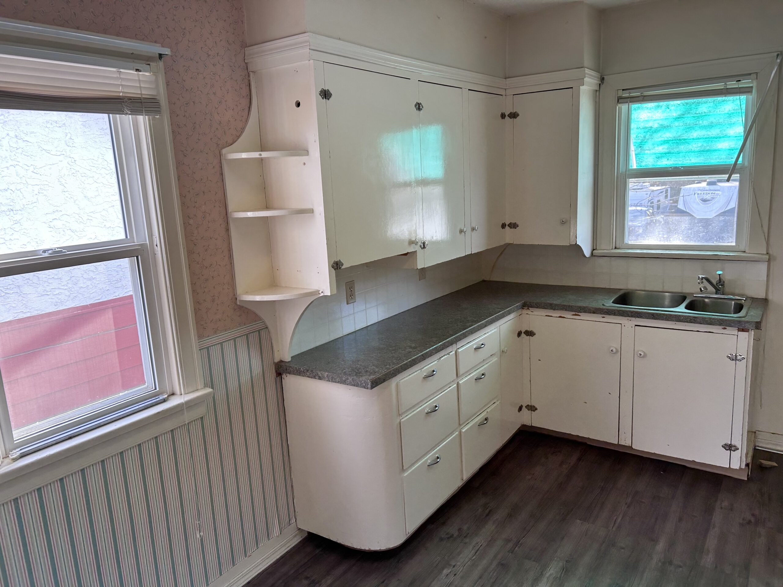 Suited bungalow with 2 furnaces…on the Bike Lane! Endearing home that has been a fantastic rental property for many years, and is now ready for your new vision. Located in the London Road neighbourhood right on the City’s fabulous bike lane, you’ll have central and immediate access to virtually everywhere. Lots of parking here with a generous parking stall out back just off the “T’d” back lane, not to mention specialized Handicapped zoned parking out front. The storage garage measures 20 ft x 12 ft, but there is great potential to knock that down and construct a sweet new garage. Entering the main level you’ll be greeted by wood floors throughout, a beautiful oversized picture window, and a very open living/dining room space. The kitchen overlooks the back yard to the sunny south, and there has already been a wonderful glass shower upgrade in the main bathroom. A common, but convenient, entrance from the back leads you to a cozy 1 bedroom suite (illegal) down and very large laundry/utility room. Having separate furnaces for each suite provides maximum comfort for all occupants. A long history of updates to the home include washer and dryer (2023); new hot water tank (2020); flooring in kitchen, stairs, and lower suite (2018); virtually all windows, eavestroughs, gutter guards, and downspouts (2008); roof shingles (2004); independent furnaces (1991); total basement suite renovation from studs with R12 insulation, 100 amp electrical panel, and most plumbing replaced in 1989. There is still some residual knob and tube wiring left in main level (quote to replace will be provided). Take a look at this charming property today with your preferred agent of choice!